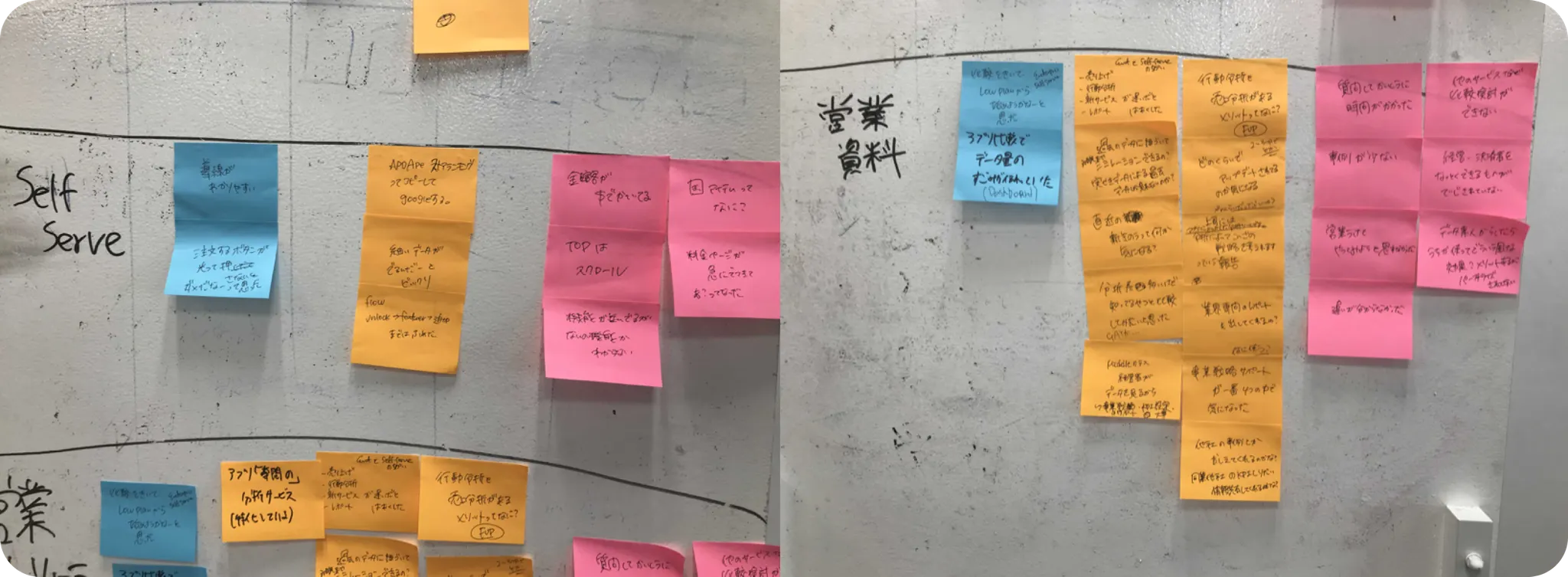 ๊ณ ๊ฐ ์„ธ๊ทธ๋จผํŠธ๋ณ„๋กœ ๋‚˜๋ˆ ์„œ 4๋ช…์—๊ฒŒ ์œ ์ € ์ธํ„ฐ๋ทฐ ์‹ค์‹œ. ๊ฐ ์ธํ„ฐ๋ทฐ์—์„œ ๋‚˜์˜จ ํ”ผ๋“œ๋ฐฑ์„ ์นดํ…Œ๊ณ ๋ฆฌ๋ณ„๋กœ ์ •๋ฆฌํ•˜์—ฌ ๊ฐœ๋ฐœ ๋ฐฉํ–ฅ์„ฑ ๋ฐ ์—…๋ฌด ์šฐ์„ ์ˆœ์œ„ ์„ค์ •. Self-Service ๊ณต๊ฐœ๊นŒ์ง€ ์ž‘์—… ์˜ˆ์ •์ด์—ˆ๋˜ ๋ถ€๋ถ„์— ๋Œ€ํ•œ ํ”ผ๋“œ๋ฐฑ์ด ๋งŽ์•˜๊ธฐ์— ํ•ด๋‹น ๋ถ€๋ถ„์€ ๊ทธ๋Œ€๋กœ ์ง„ํ–‰. ์ƒˆ๋กญ๊ฒŒ ์•Œ๊ฒŒ๋œ ๋ถ€๋ถ„์€ ์šฐ์„ ์ˆœ์œ„๋ฅผ ์ •ํ•ด์„œ ๋ฆด๋ฆฌ์Šค ์ „ใƒปํ›„๋กœ ๊ฐœ์„ ํ•  ์ˆ˜ ์žˆ๋„๋ก Backlog ์ž‘์„ฑ.