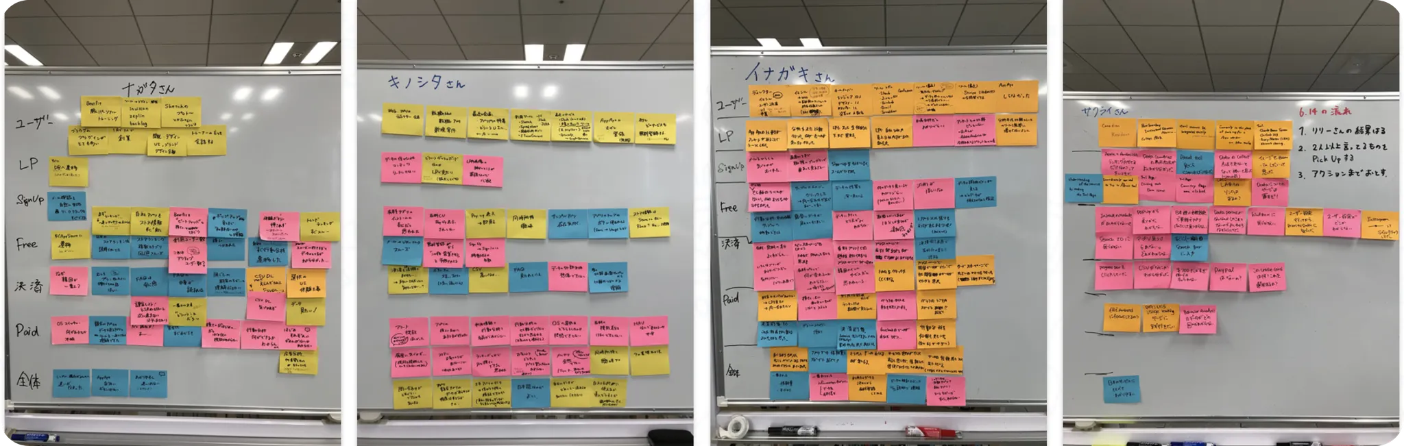 ์‚ฌ์šฉ์ž ์ธํ„ฐ๋ทฐ์—์„œ๋Š” 3์ข…๋ฅ˜์˜ ํฌ์ŠคํŠธ์ž‡์„ ์ค€๋น„ํ•˜์—ฌ ์ธํ„ฐ๋ทฐ ๊ณผ์ • ์ค‘์— ๋А๋‚€ ์ ์„ ์ž‘์„ฑ. ๋ณด๋“œ์— ํ”„๋กœํ† ํƒ€์ž…์˜ Test Flow๋ฅผ ํƒ€์ดํ‹€๋ณ„๋กœ ๋‚˜๋ˆ„๊ณ  ๊ฐ Flow ๊ด€๋ จ ์นด๋“œ๋ฅผ ๋ถ™์˜€๋‹ค.