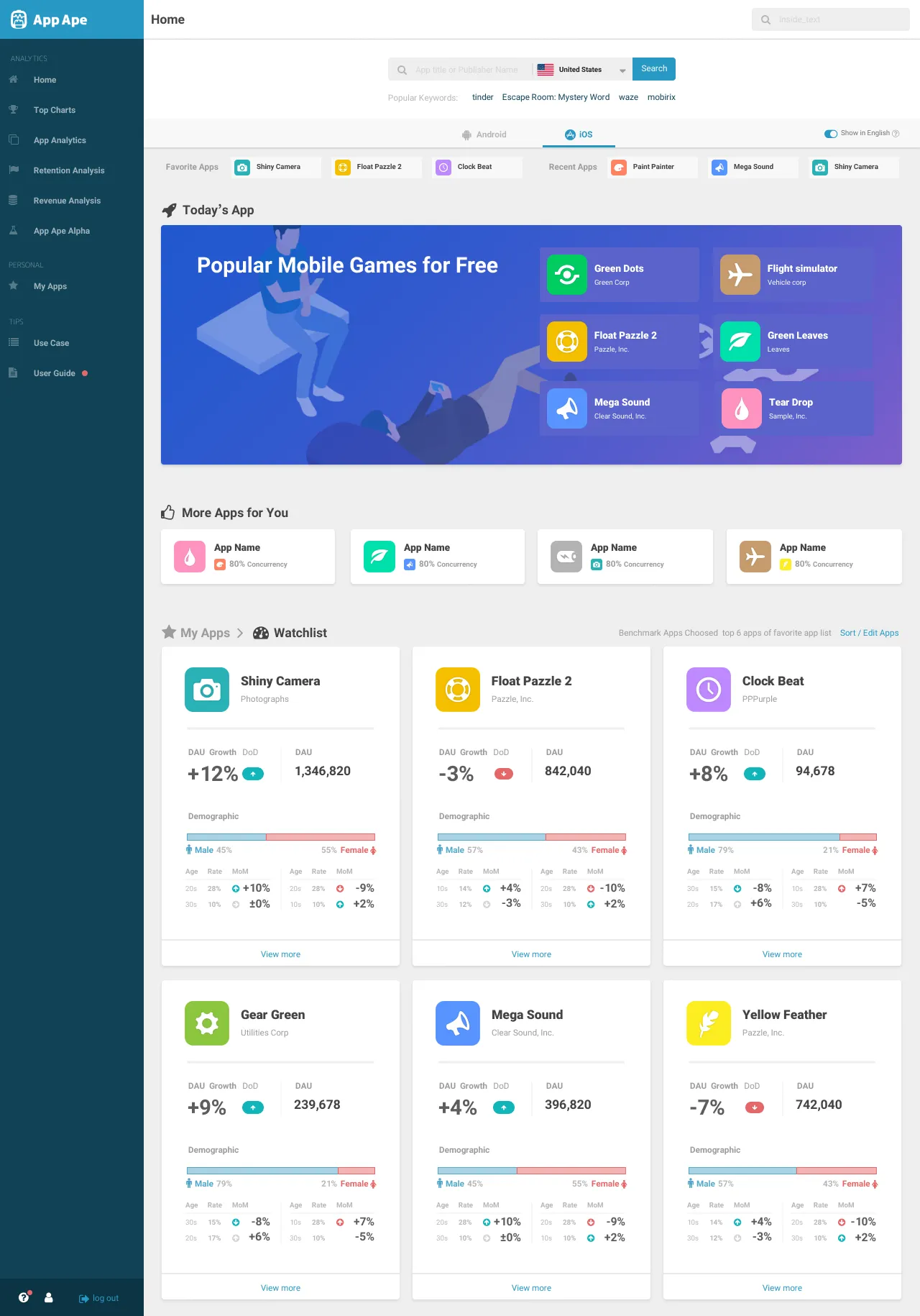 Display different apps daily in a certain routine. Users get to meet varieties of apps through App Ape’s top page, and more frequently come back to check apps.
