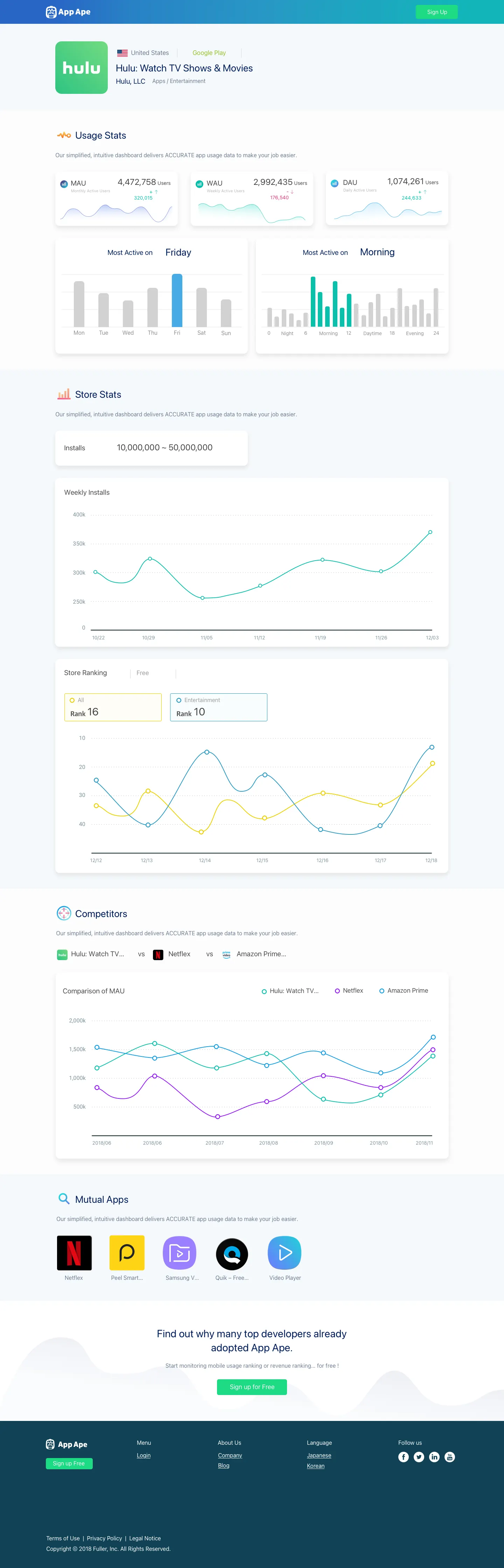 App Apeκ° λ―Έκ΅μμ μΆμλ ν, μλΉμ€ μΈμ§λλ₯Ό λμ΄κΈ° μν΄ κ²μ μμ§ μ΅μ ν(SEO)λ‘ μ΄μ΄μ§λ λλ© νμ΄μ§(LP)λ₯Ό μ μ.