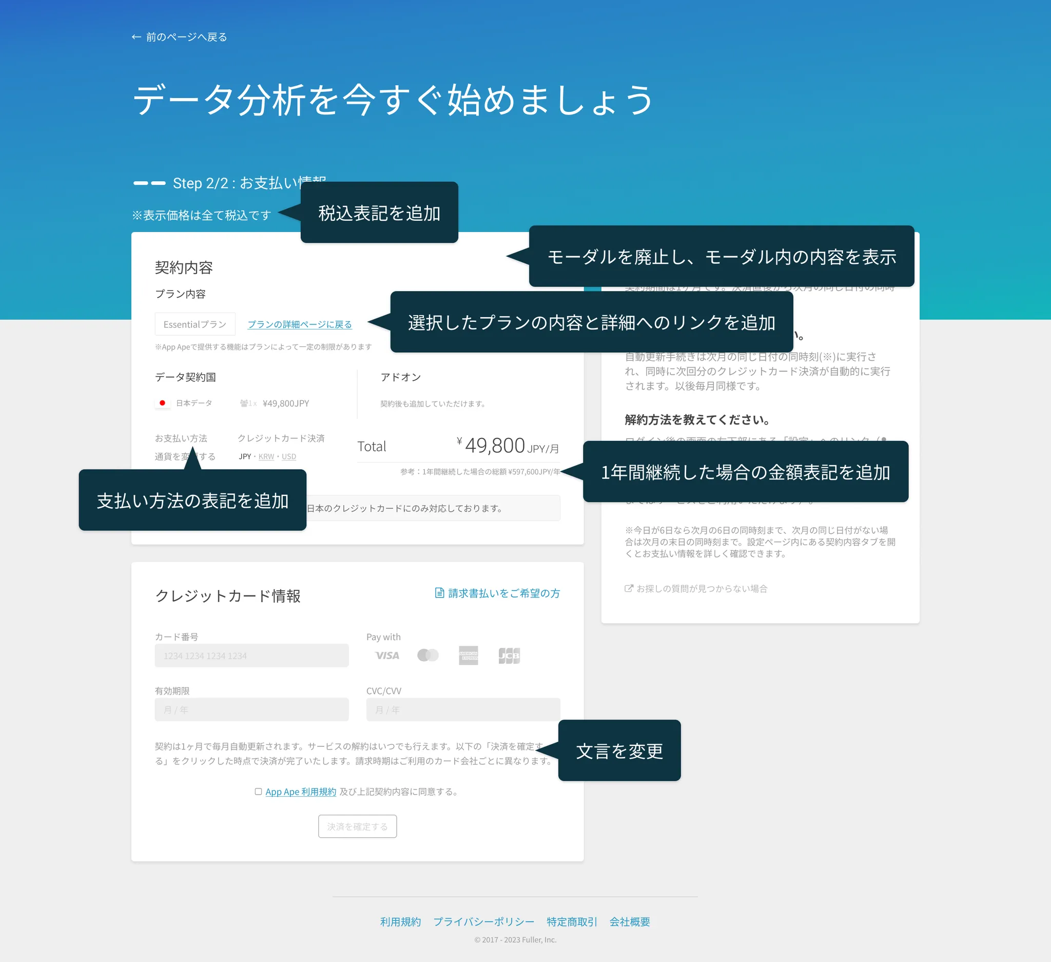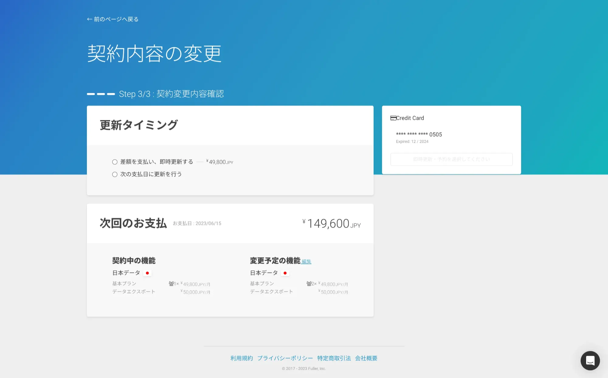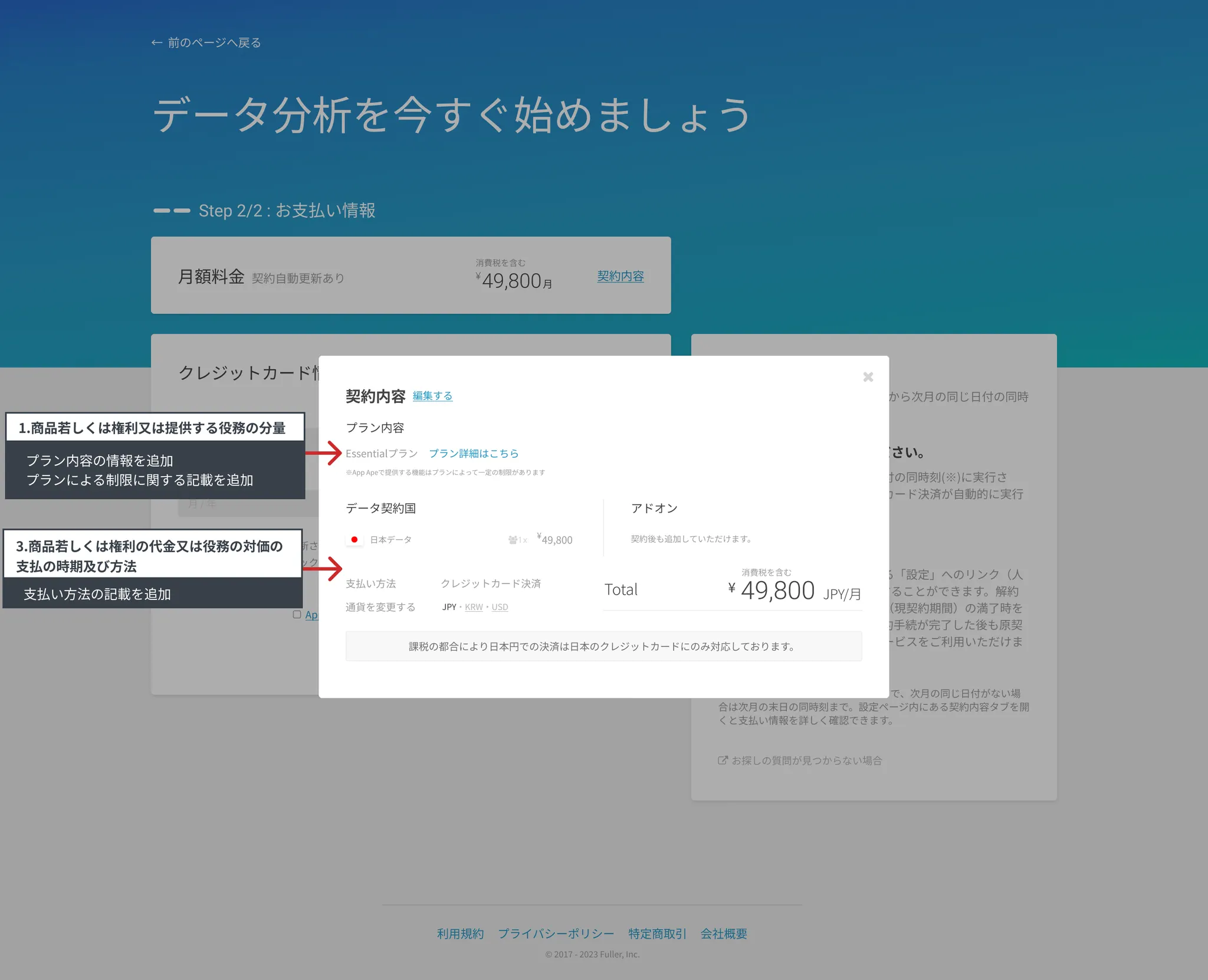 법 개정 가이드라인을 토대로 현재 결제 플로우를 검토해보니 계약 갱신에 대한 안내 및 동의, 계약 플랜 세부 사항, 세율 표시 등 사용자에게 제공되는 정보가 부족한 상황이었음.