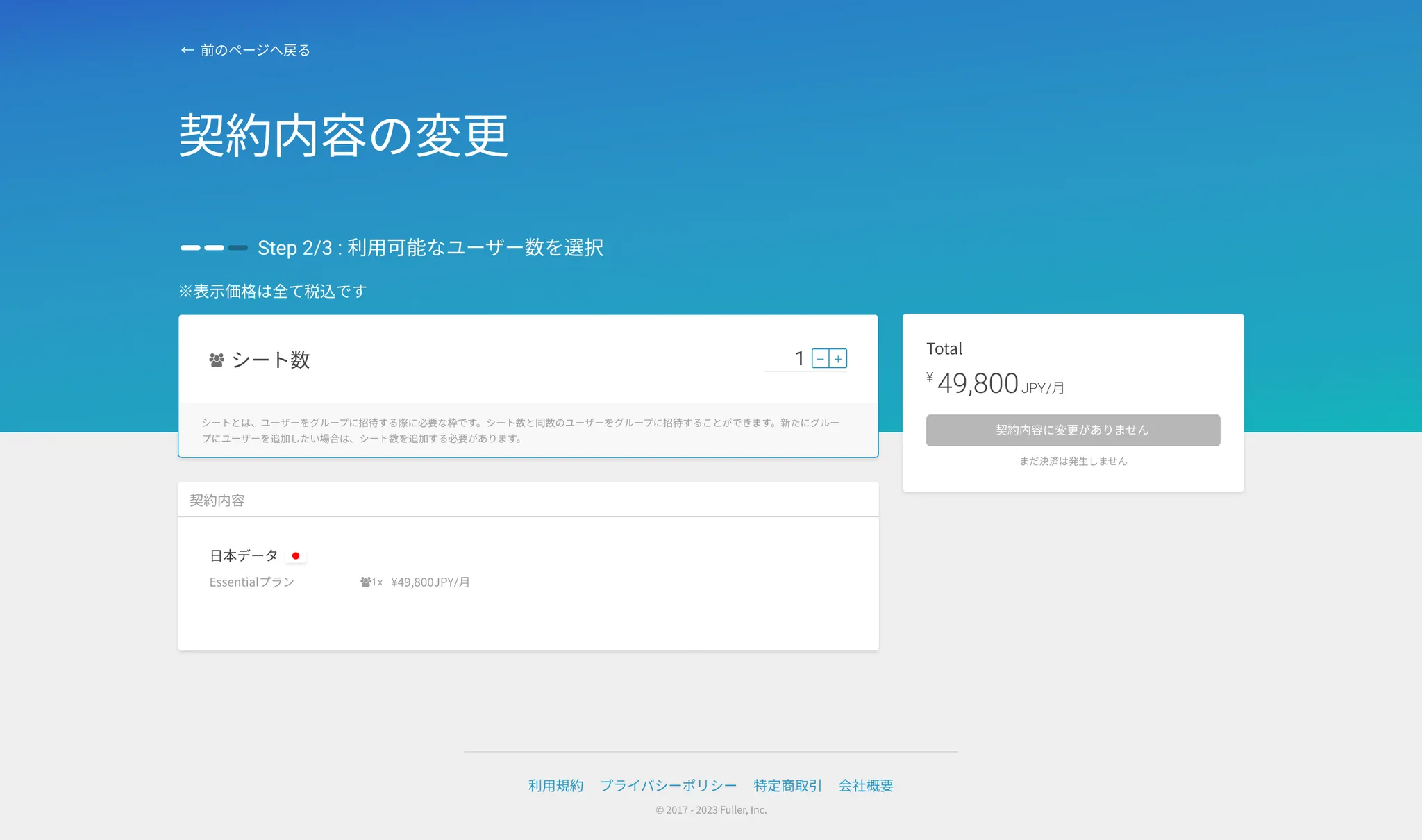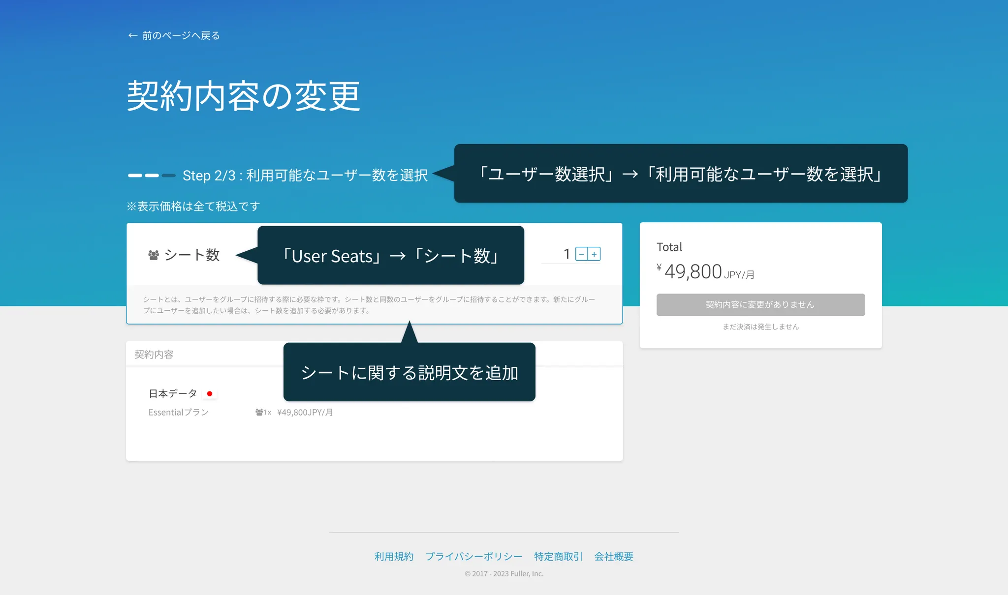 결제 통화가 일본 엔(JPY)인 경우 「※ 표시된 가격은 모두 세금 포함입니다」라는 문구를 모든 플랜 페이지와 계약 변경 페이지에 추가.