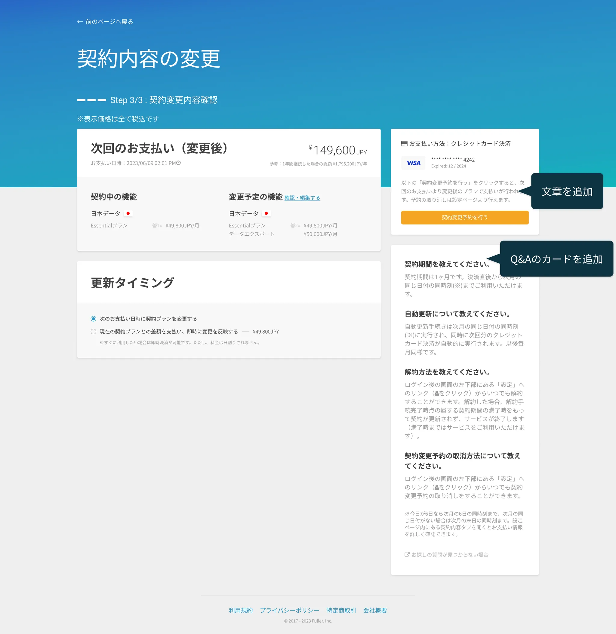 계약 내용 변경의 최종 확인 화면에 Q&A 카드 추가 (초기 결제 화면에 배치된 카드와 동일한 카드 추가)